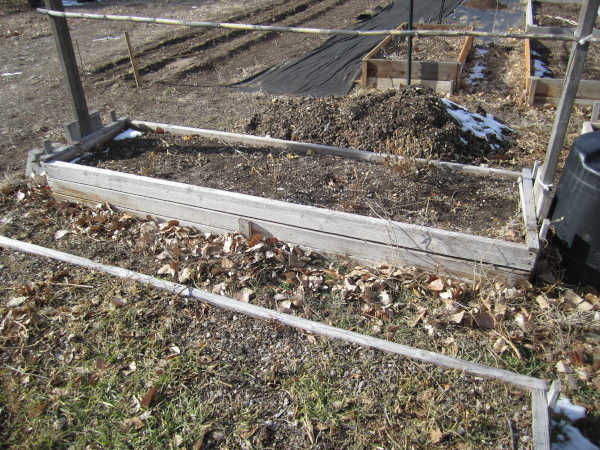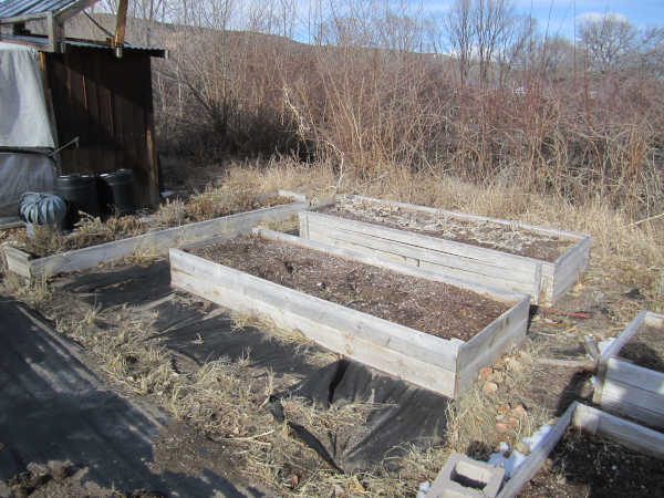 After you’ve created the box, you put in the proper amount of soil, compost, peat moss and manure. You need to get the composition of the box just right. If you add too much soil and not enough organic material the box will compact and lose it’s productivity. Depending on how long you plan to wait before planting, you will want to adjust the ratio to allow for any deterioration that may occur. Remember the soil and air are in balance, things come down from the air and the soil returns the favor.